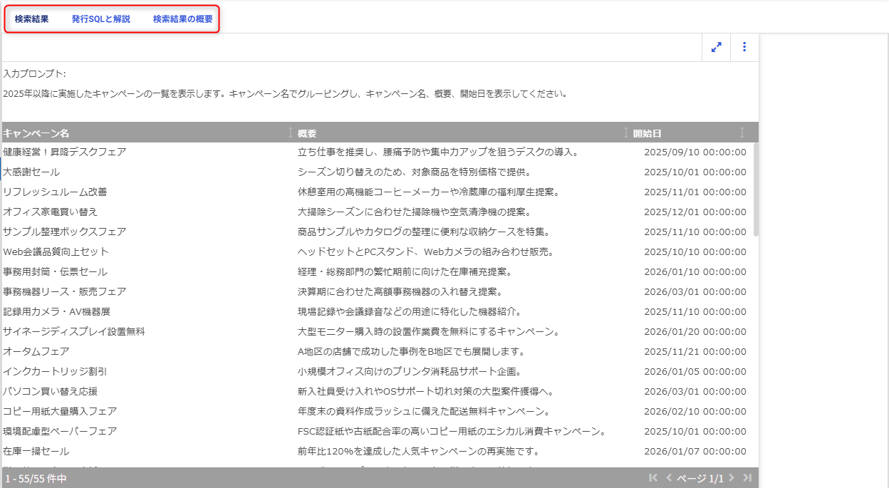 複数のグラフや表を連動させて確認することができます。多くの視点を組み合わせて利用できるのが特徴です。
