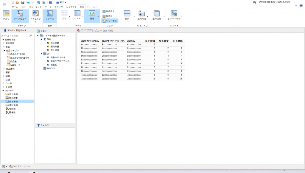 利用者がWebFOCUS固有インターフェースの操作を覚える必要はありますが、自由度の高いデータ抽出機能が利用できます。