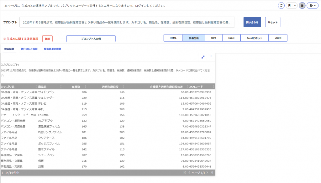 用途に合わせた形式で、ExcelやExcelピボット、PDF、CSV、PowerPoint、JSONなどのデータを入手できます。