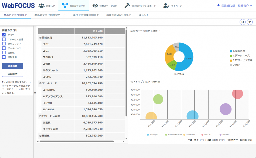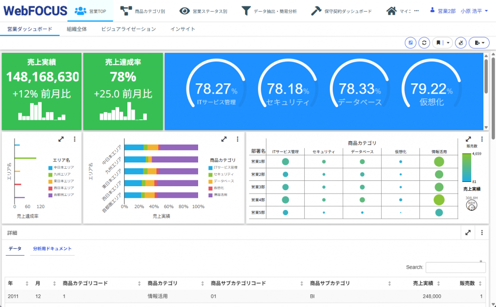 全社の営業戦略立案のため、より自由な視点でデータ抽出・集計ができます。