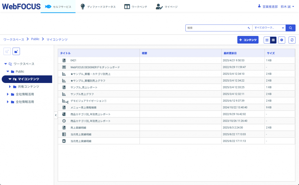 日常業務で必要とする特定の業務データやレポートにアクセスし、あたかも自社でBIシステムを操作しているかのような体験ができます。